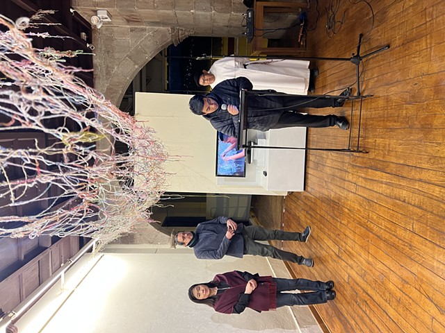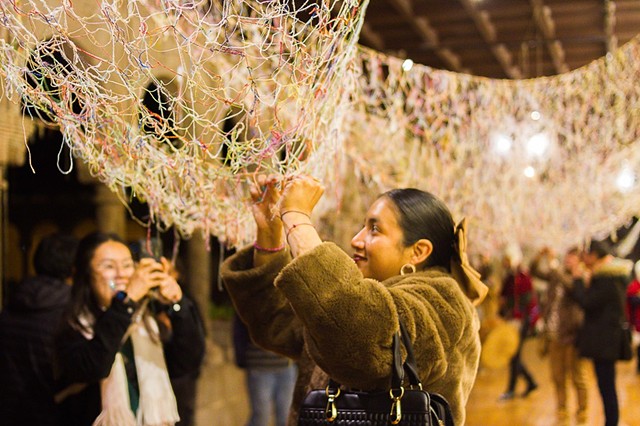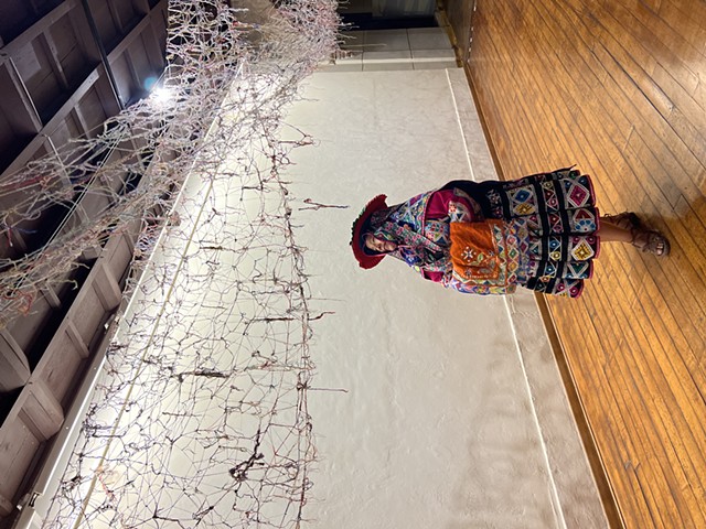 For the opening, I wanted to create a sense of “home” and resonate with my theme of connection. In coordination with the gallery, I invited local musicians and performers in traditional dress. As they played, people naturally began dancing. It was a beautiful moment that visualized “connection,” just like my thread work. Later, reading the guest book, I learned that people from more than 30 countries had added threads to the piece there. This reminded me that art can connect people beyond language and nationality.