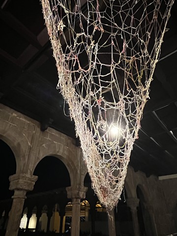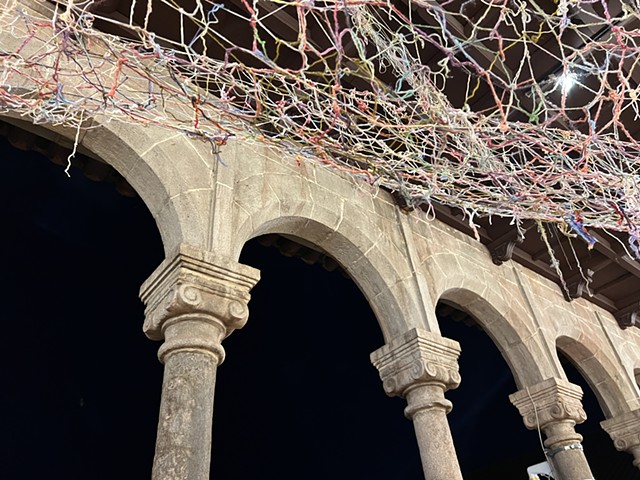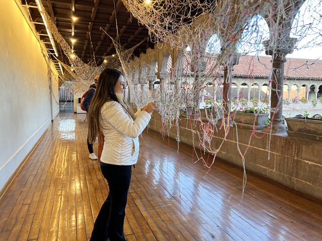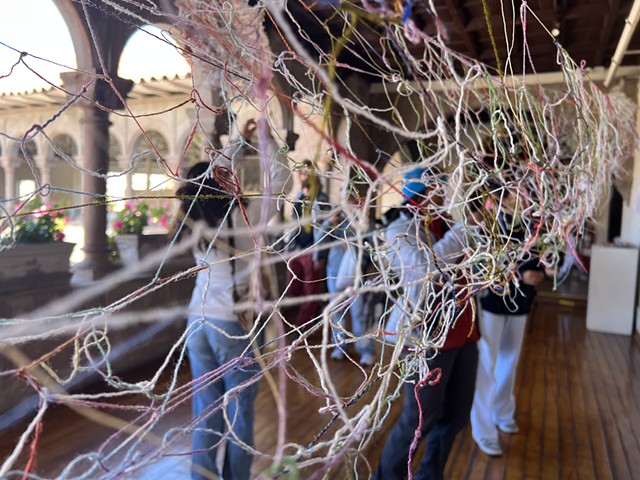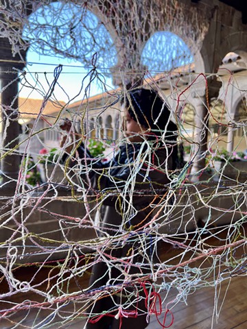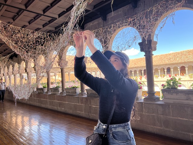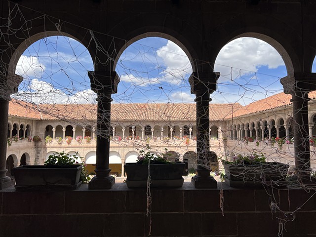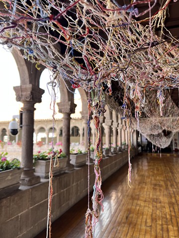 In summer 2025, I had two solo exhibitions in Peru. One was titled Un Hilo X Un Hilo, held at Museo Convento de Santo Domingo – Qorikancha in Cusco, a landmark that combines the Inca temple with the Santo Domingo convent. It was a unique and significant historical place. The gallery, sala de Bartolomé de las Casas was beautiful, facing a courtyard with arch-shaped columns.